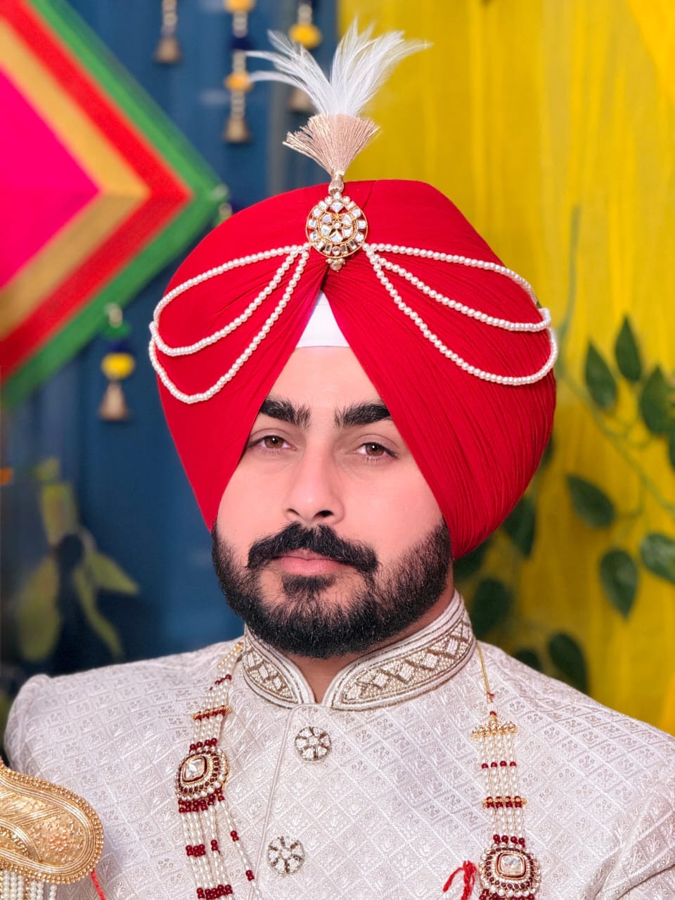 Chahal Dastar Academy ensures perfect color matching with sherwanis, kurta-pajamas, and traditional outfits. Royal accessories such as kalgi, sarpech, pearl strings, and brooches can be added to enhance the groom’s appearance.