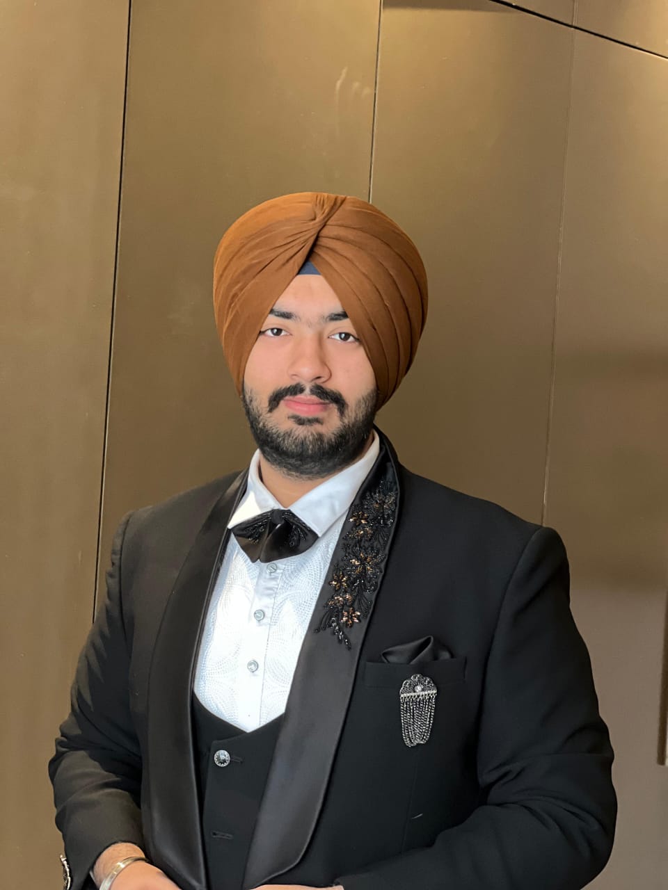 Modern Punjabi Turban – Clean, sharp look for media, fashion, and stage appearances